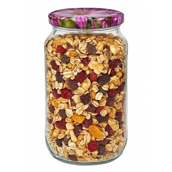 1062ml Verre rond + couvercle BasicSeal décor fleurs UNiTWiST