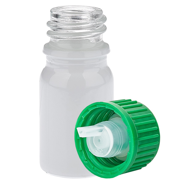 Flacon de 5 ml avec bouchon à vis standard vert (ouverture de 0,8 mm) WhiteLine UT18/5... plus