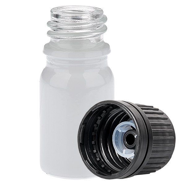 Flacon de 5 ml (globules) avec bouchon d'origine noir (ouverture de 8 mm) WhiteLine UT18/5... plus