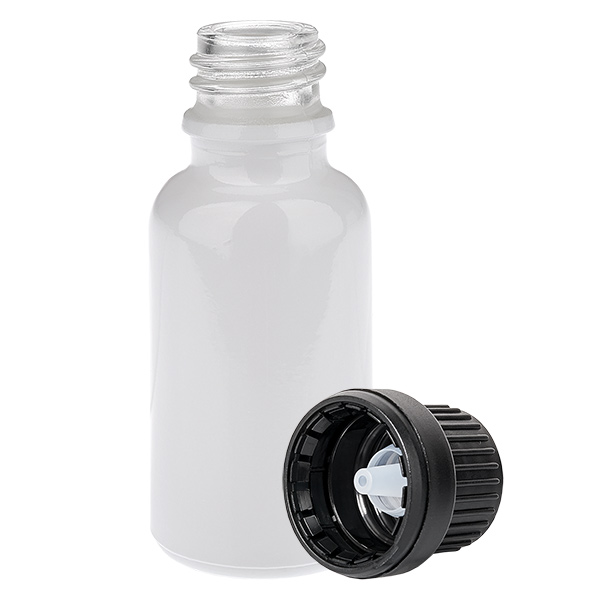 Flacon compte-gouttes de 20 ml avec bouchon d'inviolabilité noir (ouverture de 2 mm) WhiteLine UT18/20
