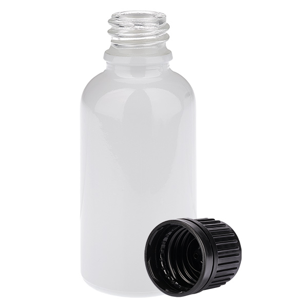 - Description du flacon en verre : verre de type III (DIN 719 ou classe de récipient III selon DIN 52339-TO180). Le verre transparent est recouvert d'un revêtement blanc brillant à l'extérieur grâce à un procédé complexe. Cela garantit une présentation haut de gamme du contenu. Vous pouvez voir le niveau de remplissage du verre. Le contenu est néanmoins protégé des rayons directs du soleil.
