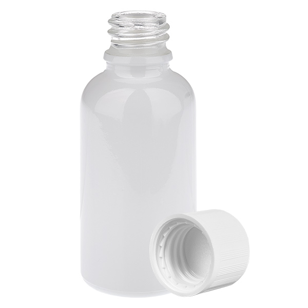 - Description du flacon en verre : verre de type III (DIN 719 ou classe de récipient III selon DIN 52339-TO180). Le verre transparent est recouvert d'un revêtement blanc brillant à l'extérieur grâce à un procédé complexe. Cela garantit une présentation haut de gamme du contenu. Vous pouvez voir le niveau de remplissage du verre. Le contenu est néanmoins protégé des rayons directs du soleil.