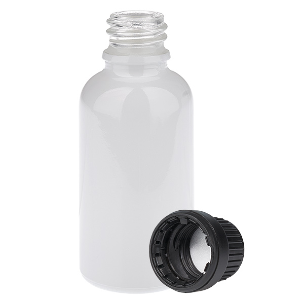 - Description du flacon en verre : verre de type III (DIN 719 ou classe de récipient III selon DIN 52339-TO180). Le verre transparent est recouvert d'un revêtement blanc brillant à l'extérieur grâce à un procédé complexe. Cela garantit une présentation haut de gamme du contenu. Vous pouvez voir le niveau de remplissage du verre. Le contenu est néanmoins protégé des rayons directs du soleil.