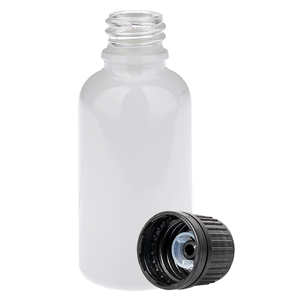 Flacon de 30 ml (globules) avec bouchon à vis standard noir (ouverture de 8 mm) WhiteLine UT18/30