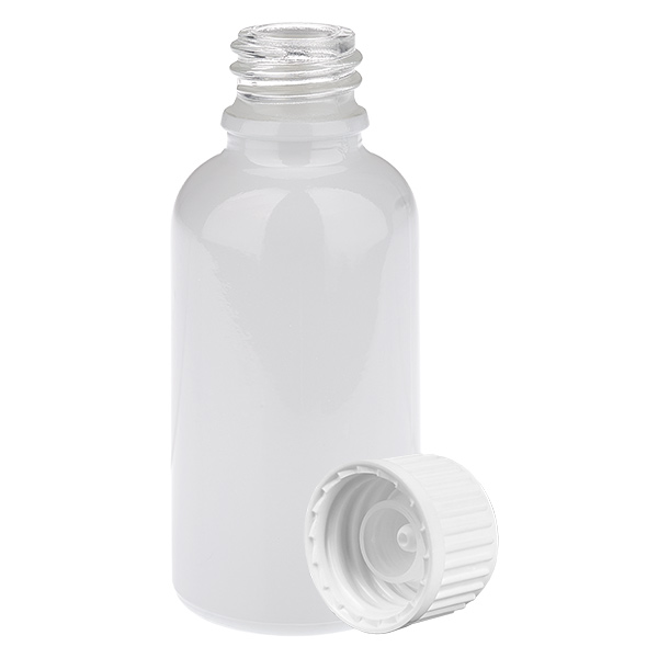 Flacon de 30 ml (globules) avec bouchon à vis standard blanc (ouverture de 3 mm) WhiteLine UT18/30