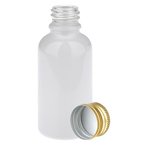 - Description du flacon en verre : verre de type III (DIN 719 ou classe de récipient III selon DIN 52339-TO180). Le verre transparent est recouvert d'un revêtement blanc brillant à l'extérieur selon un procédé complexe. Cela garantit une présentation haut de gamme du contenu. Vous pouvez voir le niveau de remplissage du verre. Le contenu est néanmoins protégé des rayons directs du soleil.