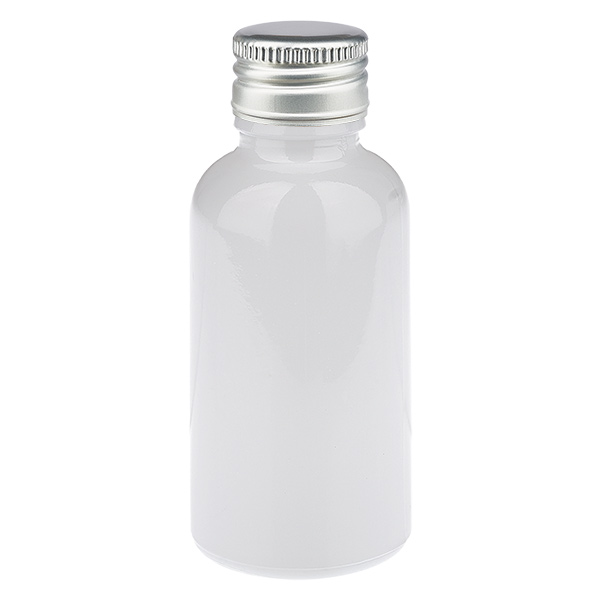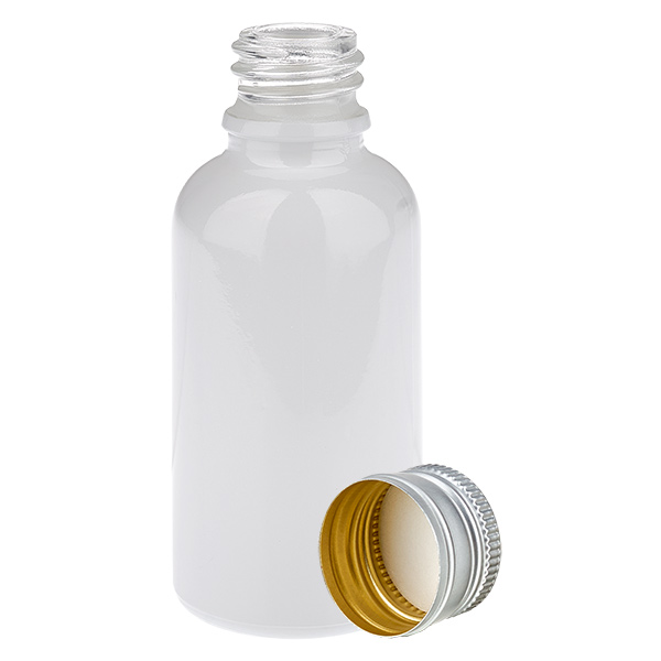- Description du flacon en verre : verre de type III (DIN 719 ou classe de récipient III selon DIN 52339-TO180). Le verre transparent est recouvert d'un revêtement blanc brillant à l'extérieur grâce à un procédé complexe. Cela garantit une présentation haut de gamme du contenu. Vous pouvez voir le niveau de remplissage du verre. Le contenu est néanmoins protégé des rayons directs du soleil.