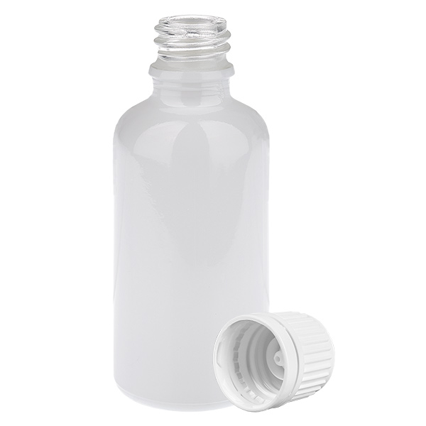 Flacon de 50 ml avec bouchon d'inviolabilité blanc (ouverture de 11 mm) WhiteLine UT18/50