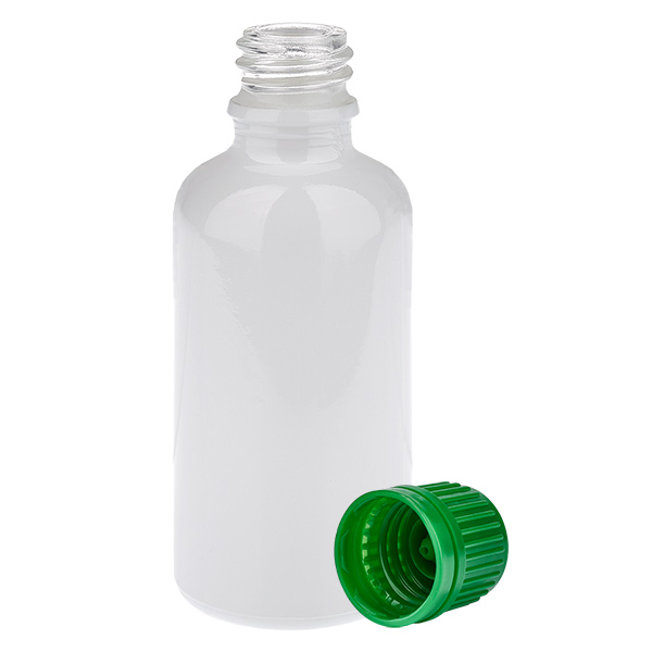 - Description du flacon en verre : type de verre III (DIN 719 ou classe de récipient III selon DIN 52339-TO180). Le verre transparent est recouvert d'un revêtement blanc brillant à l'extérieur grâce à un procédé complexe. Cela garantit une présentation haut de gamme du contenu. Vous pouvez voir le niveau de remplissage du verre. Le contenu est néanmoins protégé des rayons directs du soleil.