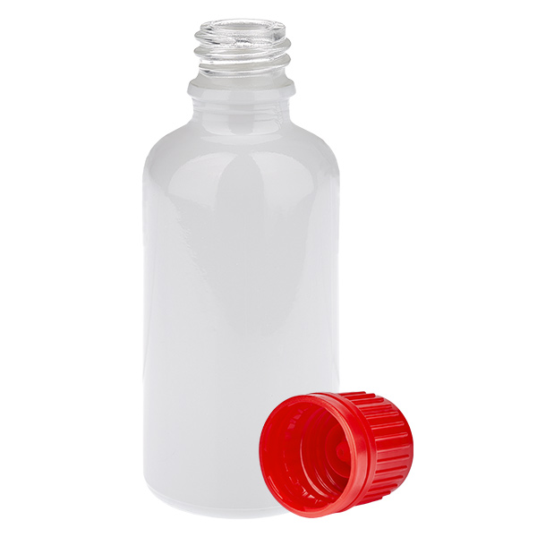 Flacon de 50 ml avec bouchon d'inviolabilité rouge (ouverture de 11 mm) WhiteLine UT18/50