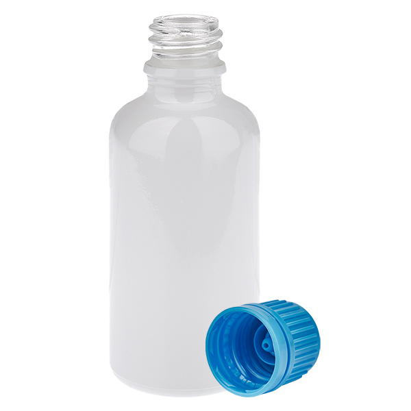 Flacon de 50 ml avec bouchon d'inviolabilité bleu (ouverture de 11 mm) WhiteLine UT18/50
