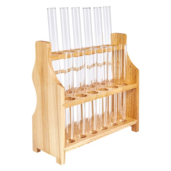 Description : Support pour éprouvettes en bois avec 12 éprouvettes et... plus